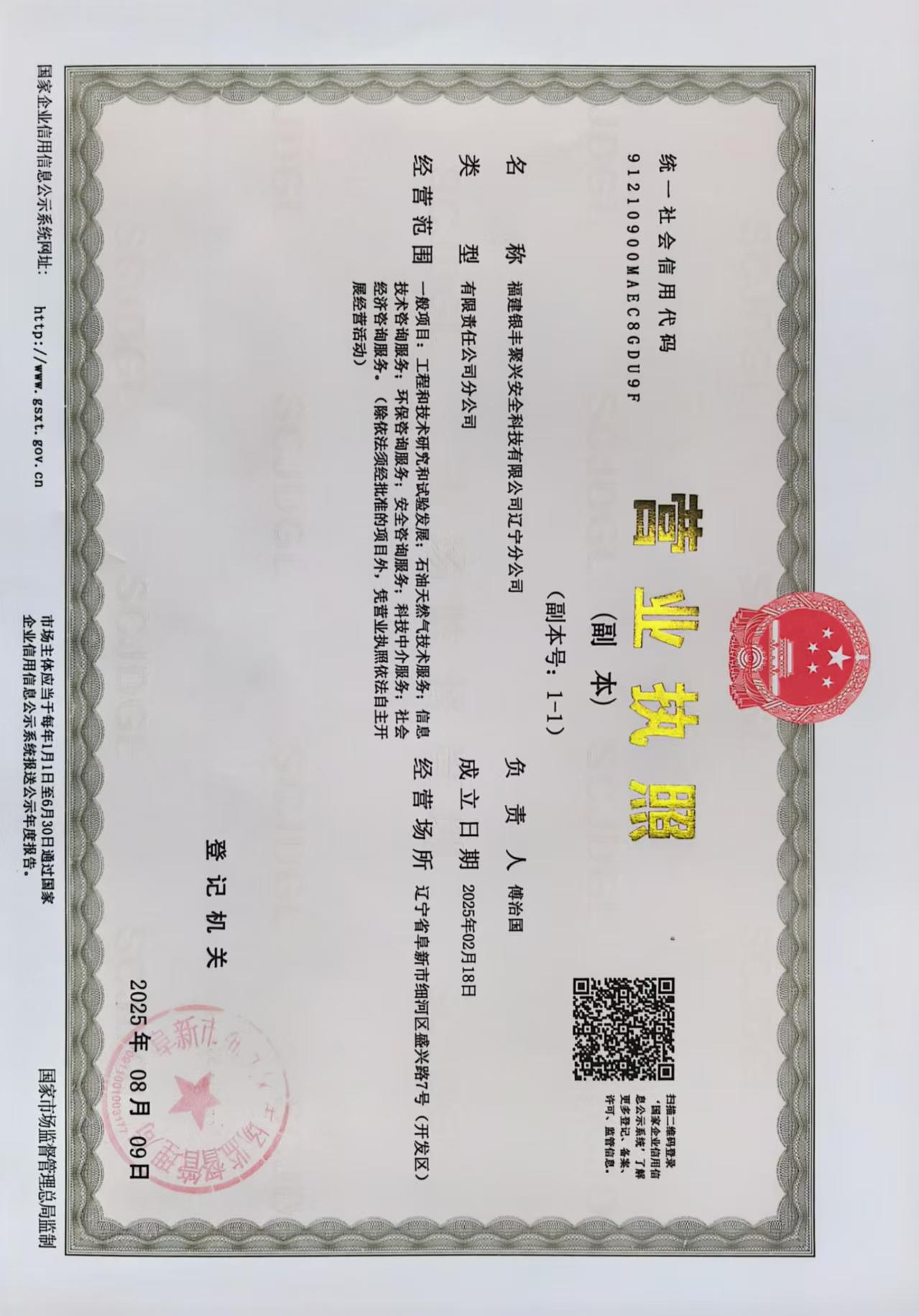 • 遼寧分公司營(yíng)業(yè)執(zhí)照